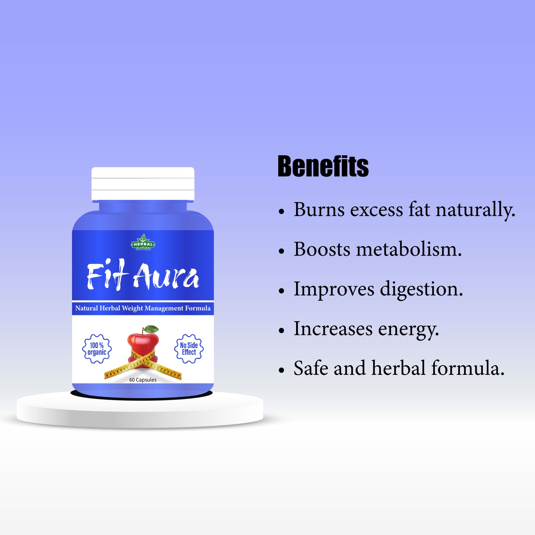 Fit Aura is a natural blend of time-tested herbs designed to support weight management, boost metabolism, and enhance digestion.